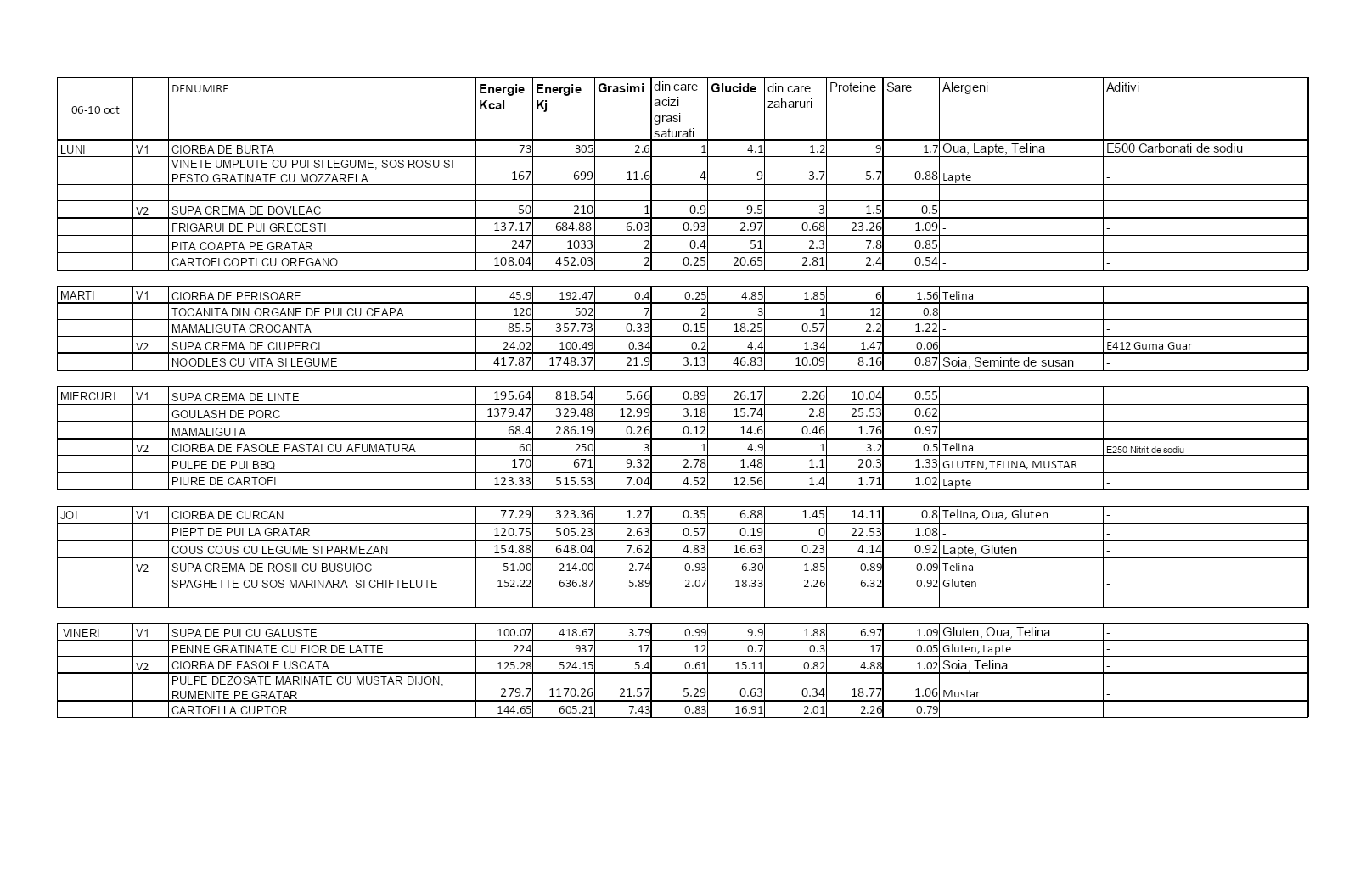 FIECARE MENIU CONTINE: